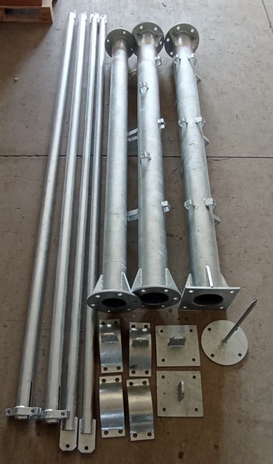 Taşıyıcı sistemi boru profilden oluşan ürün, kaynaklı imalat tekniği ile üretilmiş olup yapısal olarak yüksek mukavemet ve uzun ömür sunar. Yüzey koruması amacıyla sıcak daldırma galvaniz kaplama uygulanmış, bu sayede korozyona karşı üstün dayanım sağlanmıştır. Ürün, demonte şekilde sevk edilerek taşıma ve depolama avantajı sunar. Sahada montajı ise cıvata, vida ve perçinli birleştirme yöntemleri ile gerçekleştirilmekte olup, hızlı, güvenli ve gerektiğinde sökülebilir bir kurulum imkânı sağlar.